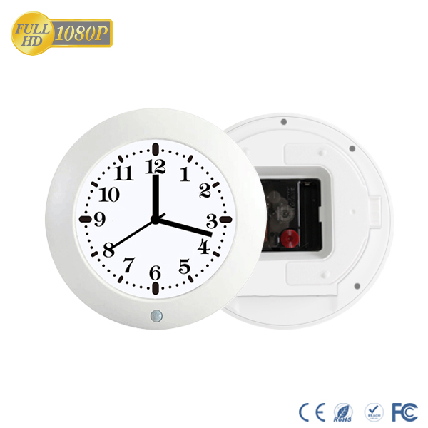 Štýlové nástenné hodiny s možnosťou pripevnenia na stenu alebo poličku so vstavanou kamerou. Ideálne pre skrytý monitoring. Malá kamera je zabudovaná v číselníku a mikrofón pre zvukový záznam je umiestnený na zadnej strane hodín. Nahrávanie je možné na základe detekcie pohybu pomocou PIR spúšťača. Nahrávanie je možné po dobu 20 hodín a pohotovostná doba (stand by režim) je až 100 dní. Video sa automaticky zaznamená na microSD kartu s Full HD rozlíšením 1920 × 1080P a kapacitou až 64 GB. Hodiny disponujú zabudovanou 3000 mAh lítium-polymérovou batériou s pohotovostnou dobou výdrže až 100 dní. |