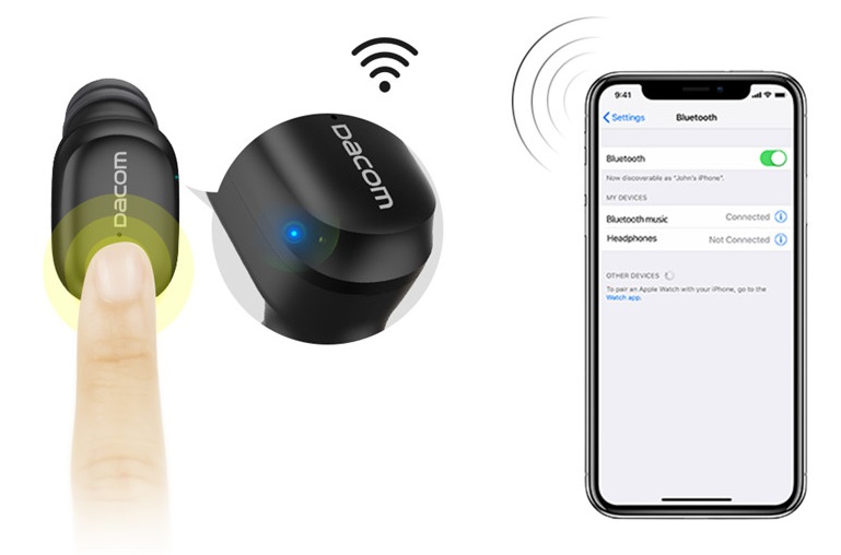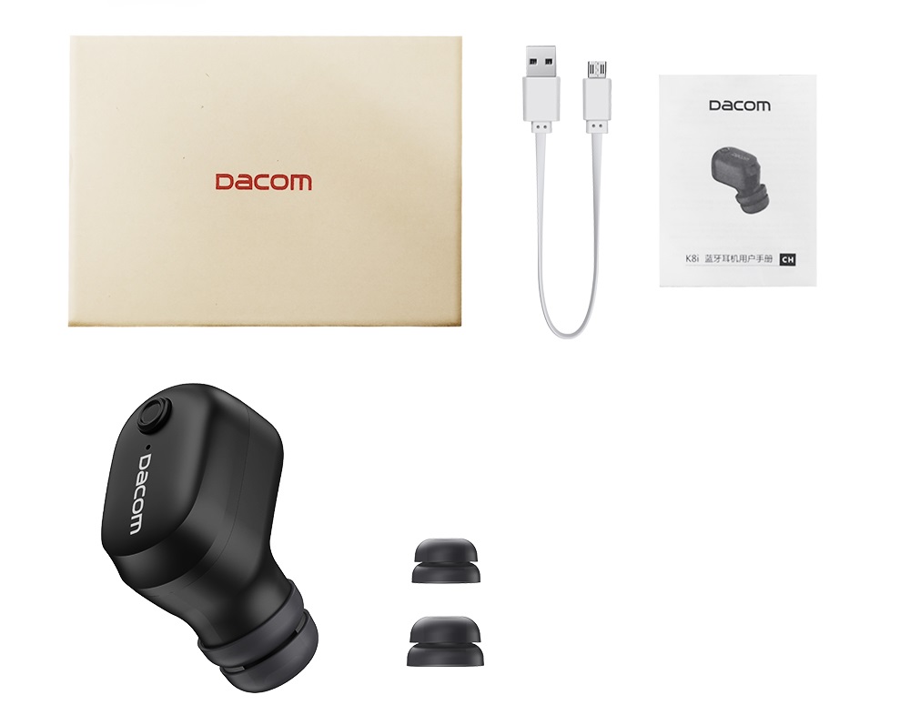 Obsah balenia: 1 x Mini bluetooth slúchadlo DACOM |