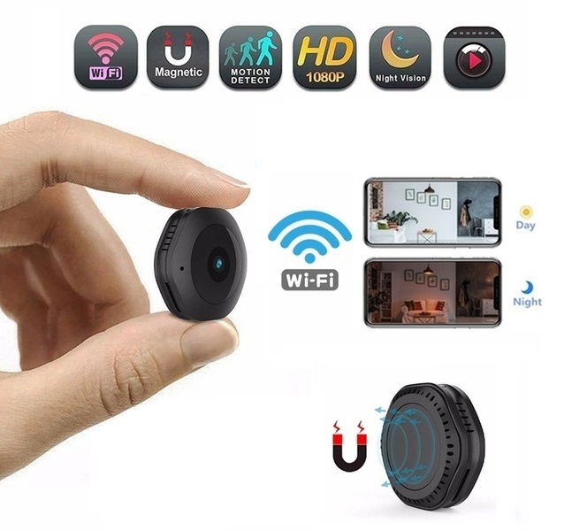 Mini Wi-Fi kamera na zabezpečenie Vášho bytu, domu, kancelárie, záhrady alebo skladu je vo verzii s Wi-Fi alebo bez Wi-Fi. Elegantný kompaktný dizajn a brilantné funkcie Vám umožňujú ľahko skryť mini kameru tak, že si to nik nevšimne, môžete ju využiť aj ako opatrovateľku pre Vaše deti. Mini kamera vo verzii Wi-Fi Vám umožní sledovať živé video na Vašom smartfóne, tablete so systémom iOS / Android prostredníctvom aplikácie, ktorá je zadarmo na stiahnutie. Mini Wi-Fi kamera má tiez funkciu nočného videnia, takže Vám ani v noci nič neunikne. Navyše disponuje aj detekciou pohybu, takže žiaden pohyb nezostane bez povšimnutia. Táto mini Wi-Fi kamera je ideálnym prostriedkom pre odhalenie zlodeja, či iného nežiadúceho živlu napríklad vo Vašej kancelárii, u Vás doma alebo v skladoch, či iných priestoroch, kde Vašu mini kameru nainštalujete. Wi-Fi kamera je miniatúrnych rozmerov so silným magnetickým držiakom, takže ju jednoducho na tento magnet nasadíte. Kamera je schopná nahrávať video vo Full HD rozlíšení 1080P na telefón alebo v rozlíšení 1080x720 na pamäťovú kartu max. do 64GB (nie je súčasťou balenia).