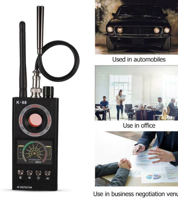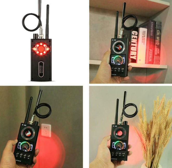 Multifunkčný detektor skrytých kamier a GSM odposluchov K68 je novou generáciou detektorov, vyrobený z vojenskej kvality, s novým LED displejom typu kódomer, ktorý dokáže presnejšie určiť intenzitu zdroja signálu. LED baterka na zadnej strane môže v špeciálnych prípadoch uspokojiť potreby osvetlenia a dizajn je intímnejší. Zariadenie využíva americkú vojenskú technológiu. Ide o druh trhovo orientovaného nástroja Anfang vyvinutý výhradne pre rôzne odpočúvacie zariadenia, sledovač áut, bezdrôtovú gombíkovú kameru, bezpečnostnú kameru, zariadenia na podvody pri hazardných hrách a ďalšie produkty. Produkt plne spĺňa vojenskú/policajnú vyšetrovaciu funkciu v tejto oblasti. Zároveň môže detekcia veľkosti zdroja elektrického žiarenia chrániť Vás a Vašu rodinu pred poškodením elektromagnetickým žiarením. Tento produkt preberá vedúcu úlohu v prijímaní režimu digitálneho príjmu, ktorý sa líši od produktov na trhu. Nielenže rozširuje frekvenciu prieskumu, ale tiež účinne zabraňuje rušeniu chaotických signálov kdekoľvek v živote.