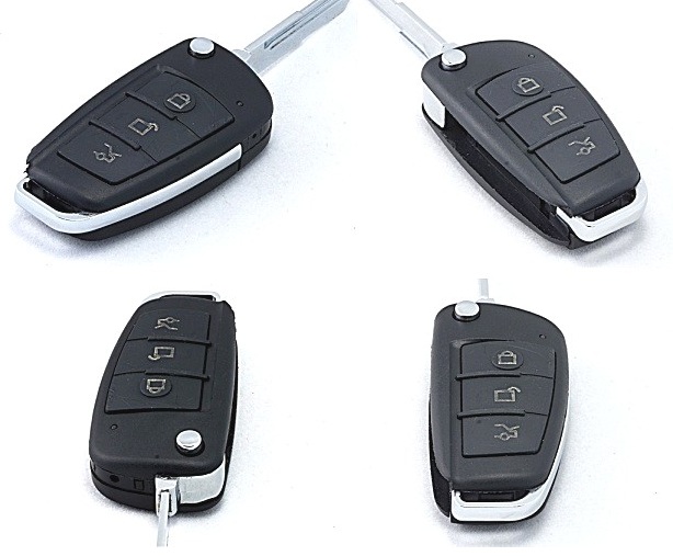 Kľúčenky patria všeobecne medzi najpraktickejšie skryté kamery. Na prvý pohľad táto kľúčenka s kamerou vyzerá ako bežný kľuč od auta. Navyše na nej nikde nenájdete žiadny slot na micro SD karty ani USB konektor, ako je bežné u lacnejších modelov. USB konektor, slot na micro SD kartu sú v kľúčenke veľmi dômyselne ukryté. V kľúčenke je ukrytá kamera s rozlíšením 1920x1080, čo vám umožní natáčať naozaj kvalitné videá. Kľúčenka s kamerou je schopná nielen natáčať videá, ale aj robiť fotografie. Kľúčenka s HD kamerou podporuje micro SD karty až do kapacity 32GB.