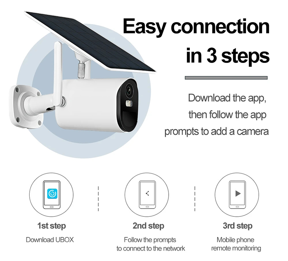 Jednoduchá inštalácia - žiadne káble - na inštaláciu stačí kamera, mobil a mobiný signál Odolná voči poveternostným vplyvom - vonkajšie IP66 Napájanie 3 x 18650 li-ion batéria - kapacita 15000mAh Nabíjanie cez USB + solárny panel 3,5 W Nízka spotreba energie - výdrž až 365 dní v roku Bezdrôtová komunikácia cez 4G LTE sieť Vysoké rozlíšenie 2.0MPix - 1920 x 1080 1/2.7" CMOS Sensor Objektív s vysokou svetelnosťou + IR LED prísvit - kvalitný záznam aj v noci Radar + PIR čidlo dvojitá detekcie pohybu - záznam + zaslanie správy pri aktivácii Uhol pohľadu 105° Ukladanie záznamu na micro SD kartu o veľkosti až 128GB (nie je súčasťou balenia) Ovládanie z tabletu alebo smartfónu aplikácií UBox- kompatibilné s Android/iOS Obojstranná hlasová komunikácia - Two Way Audio |