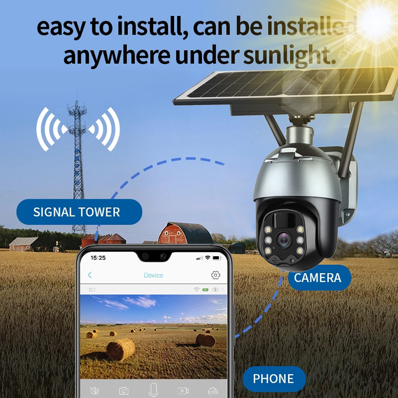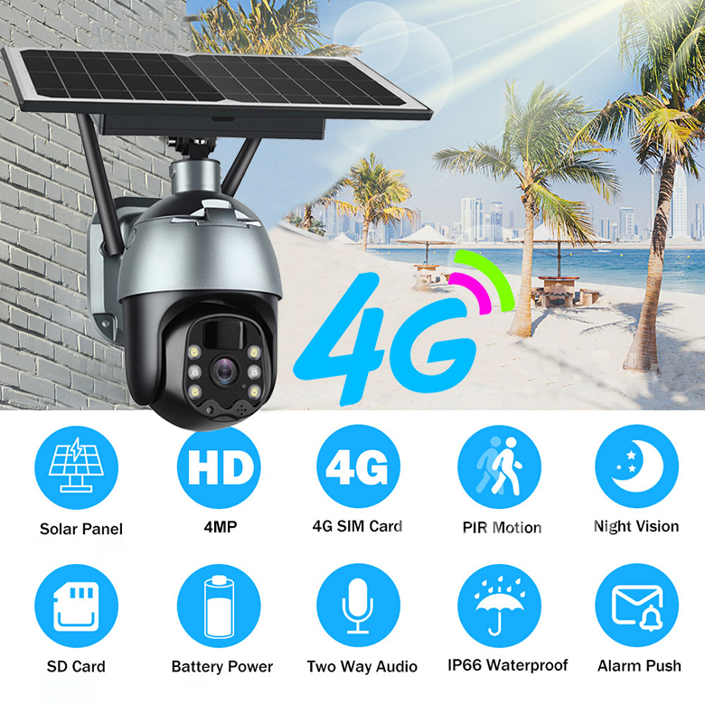 Jednoduchá inštalácia - žiadne káble - na inštaláciu stačí kamera, mobil a mobiný signál Odolná voči poveternostným vplyvom - vonkajšie IP66 Napájanie 18650 li-ion batéria - kapacita 15000mAh Nabíjanie cez USB + solárny panel 8W Nízka spotreba energie - výdrž až 6 mesiacov na jedno nabitie Bezdrôtová komunikácia cez 4G LTE sieť Vysoké rozlíšenie 4.0MPix - 2560x1440 1/2.7" CMOS Sensor + 6 vrstvová sklenená šošovka s vysokou svetelnosťou Objektív s vysokou svetelnosťou + IR LED prísvit - kvalitný záznam aj v noci 2x biele LED - pre farebný nočný záznam Radar + PIR čidlo dvojitá detekcie pohybu - záznam + zaslanie správy pri aktivácii Diaľkovo ovládaný otočný PTZ objektív - rozsah 355 ° horizontálne, 120 ° vertikálne Ukladanie záznamu na micro SD kartu o veľkosti až 128GB (nie je súčasťou balenia) Ovládanie z tabletu alebo smartfónu aplikácií UBox- kompatibilné s Android/iOS Obojstranná hlasová komunikácia - Two Way Audio |