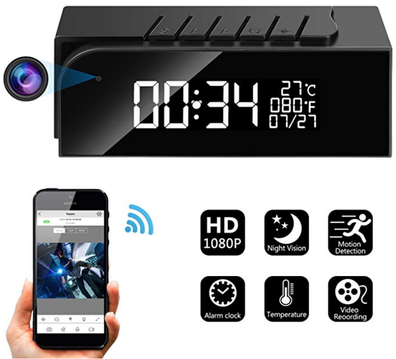 Wi-Fi kamera v digitálnych hodinách s nočným videním a detekciou pohybu IP035