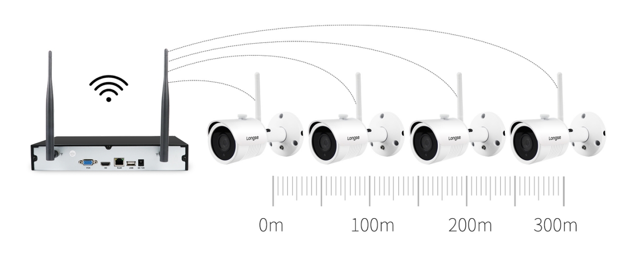 Wifi NVR rekordér má vstavaný vysielač, ktorý vysiela wifi signál do okruhu až 300m², Max. vzdialenosť NVR od kamery je 100m na otvorenom priestore a 30m cez steny. |
